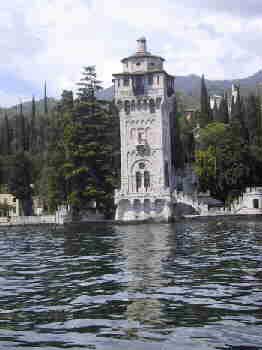 In der Mitte, zwischen den Orten Gardone und Fasano befindet sich der phantasievoll erbaute Torre San Marco, das Dock des Dichters Gabriele d'Annunzio (1863 - 1938).